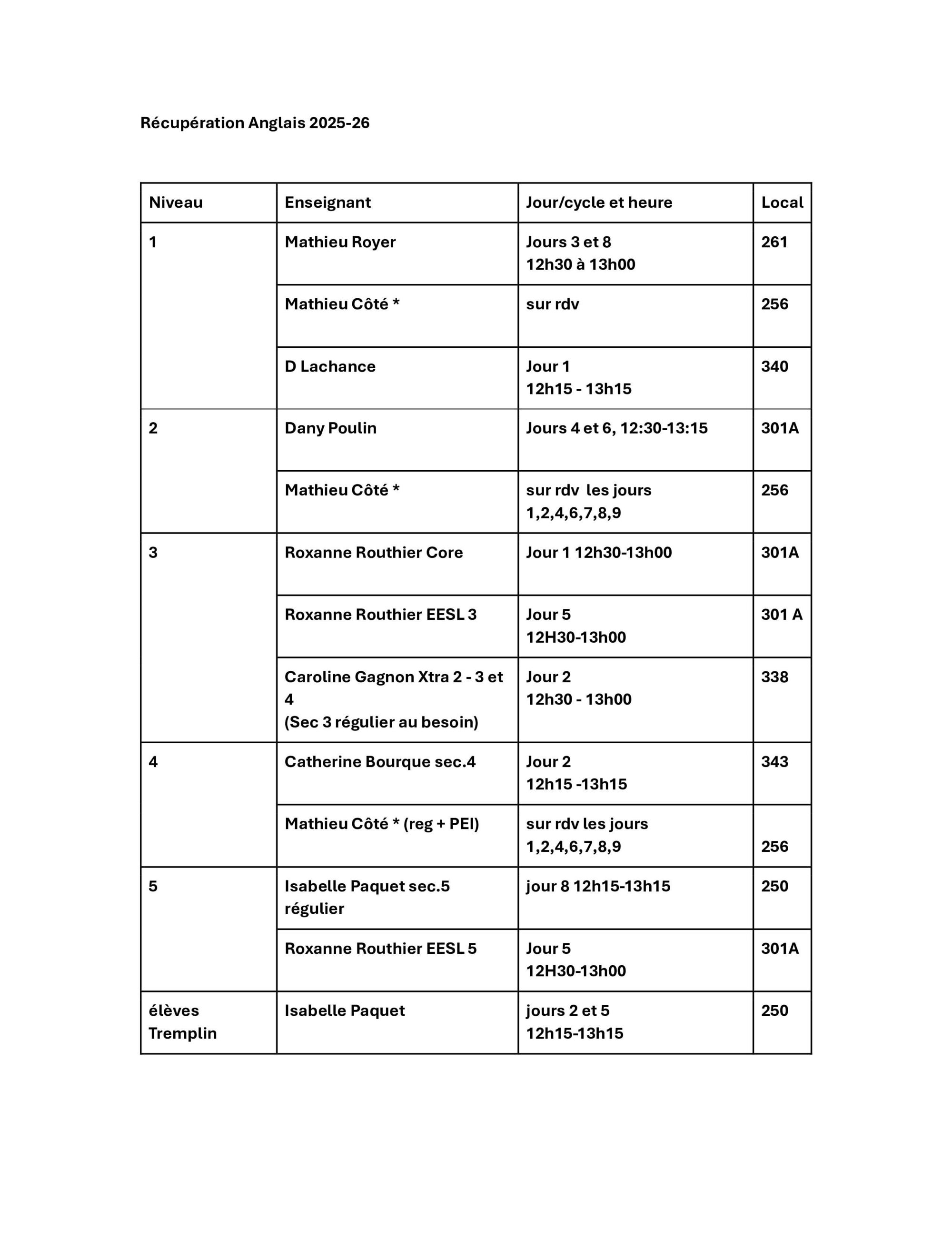 Tuteurs pour les groupes du 1er cycle