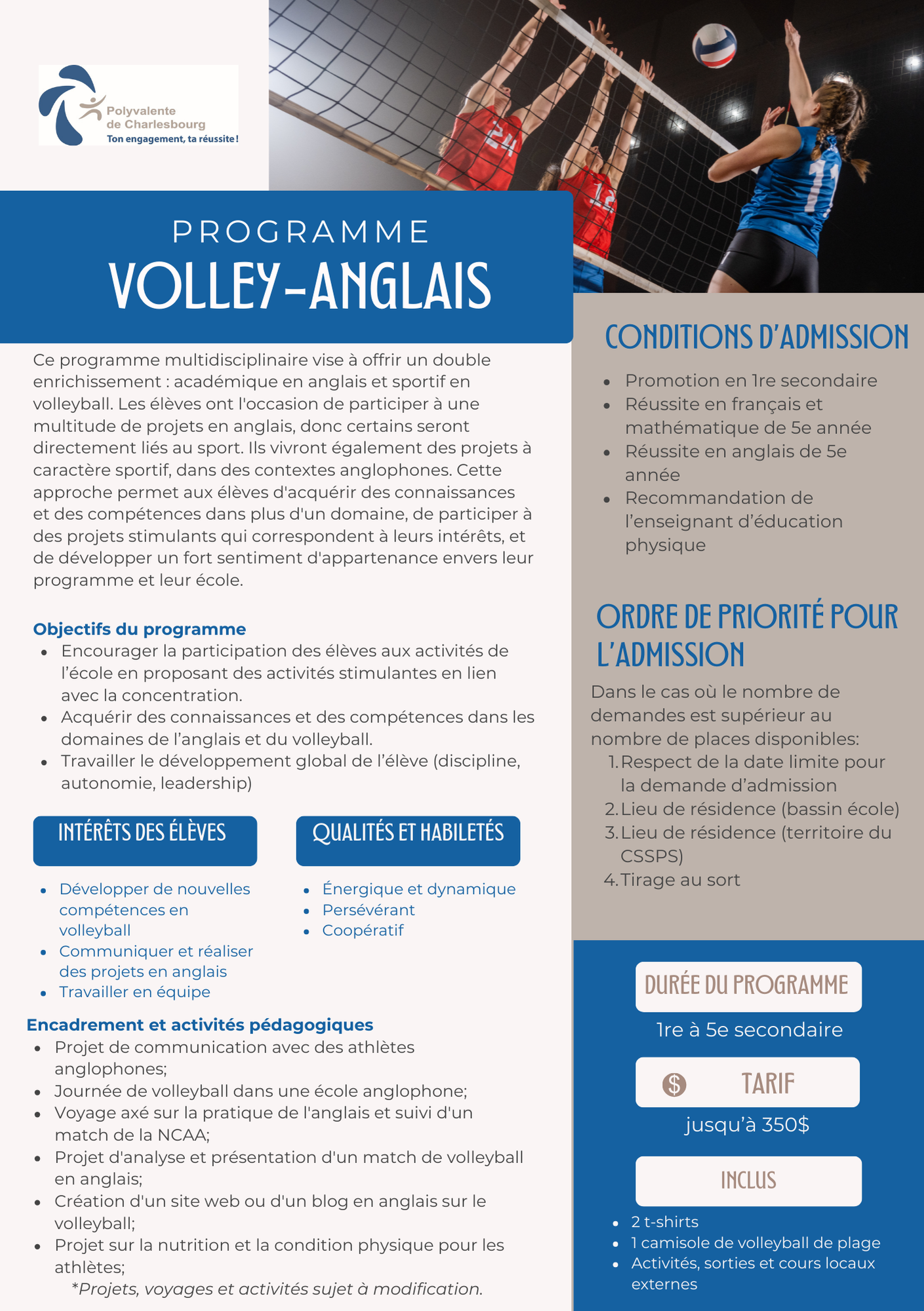 Programme Volley - Anglais (Nouveau en 2026-2027)